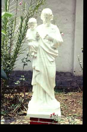 San José con el niño. Escultura en yeso en el patio del Convento la Merced. Santiago de Cali, C. 1995