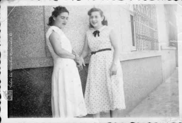 LILIA GARCÍA Y AMIGA. El vestido largo y el tipo de peinado de las dos mujeres corresponden a la moda de los años 50.