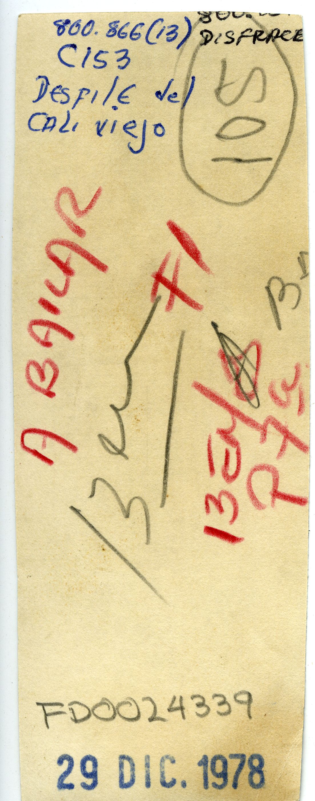 En la gráfica apreciamos a un grupo personas luciendo llamativos disfraces de la Feria de Cali en 1978