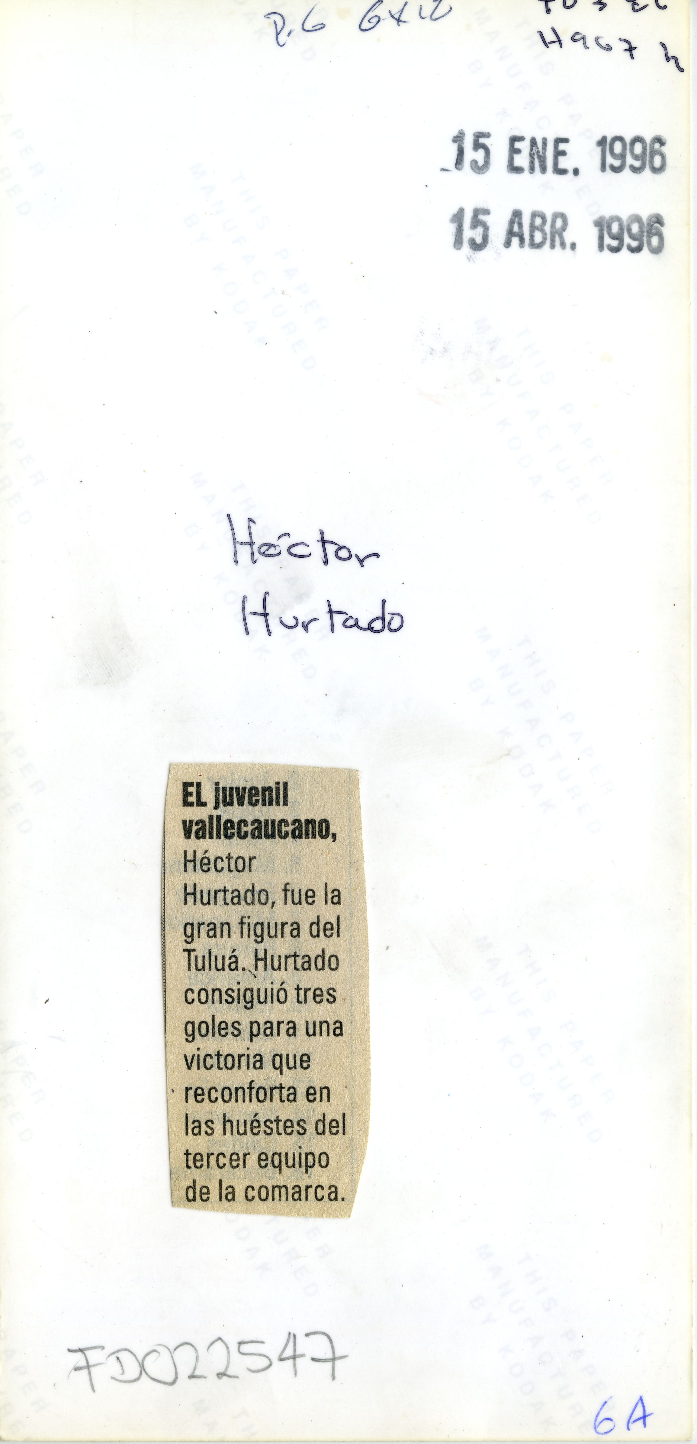 Héctor Hugo Hurtado Salazar, jugador América de Cali