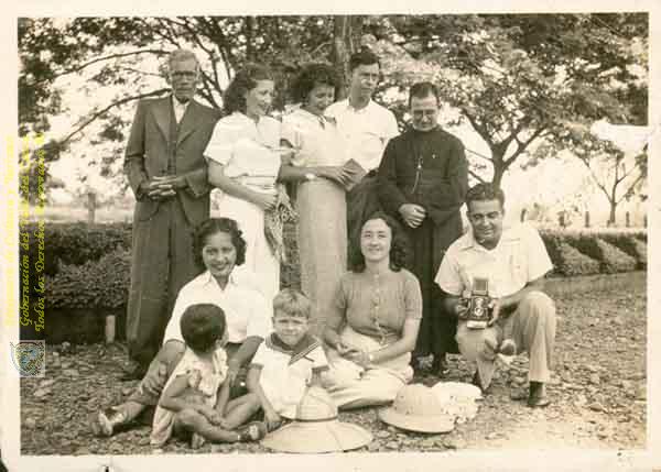 Algunos miembros de la Familia Caicedo Victoria con el padre Arteaga durante un paseo familiar