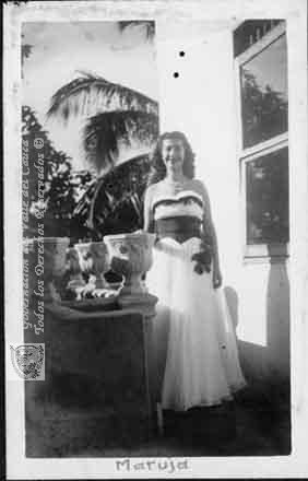 Maruja Riascos, elegantemente vestida. Santiago de Cali,1.970