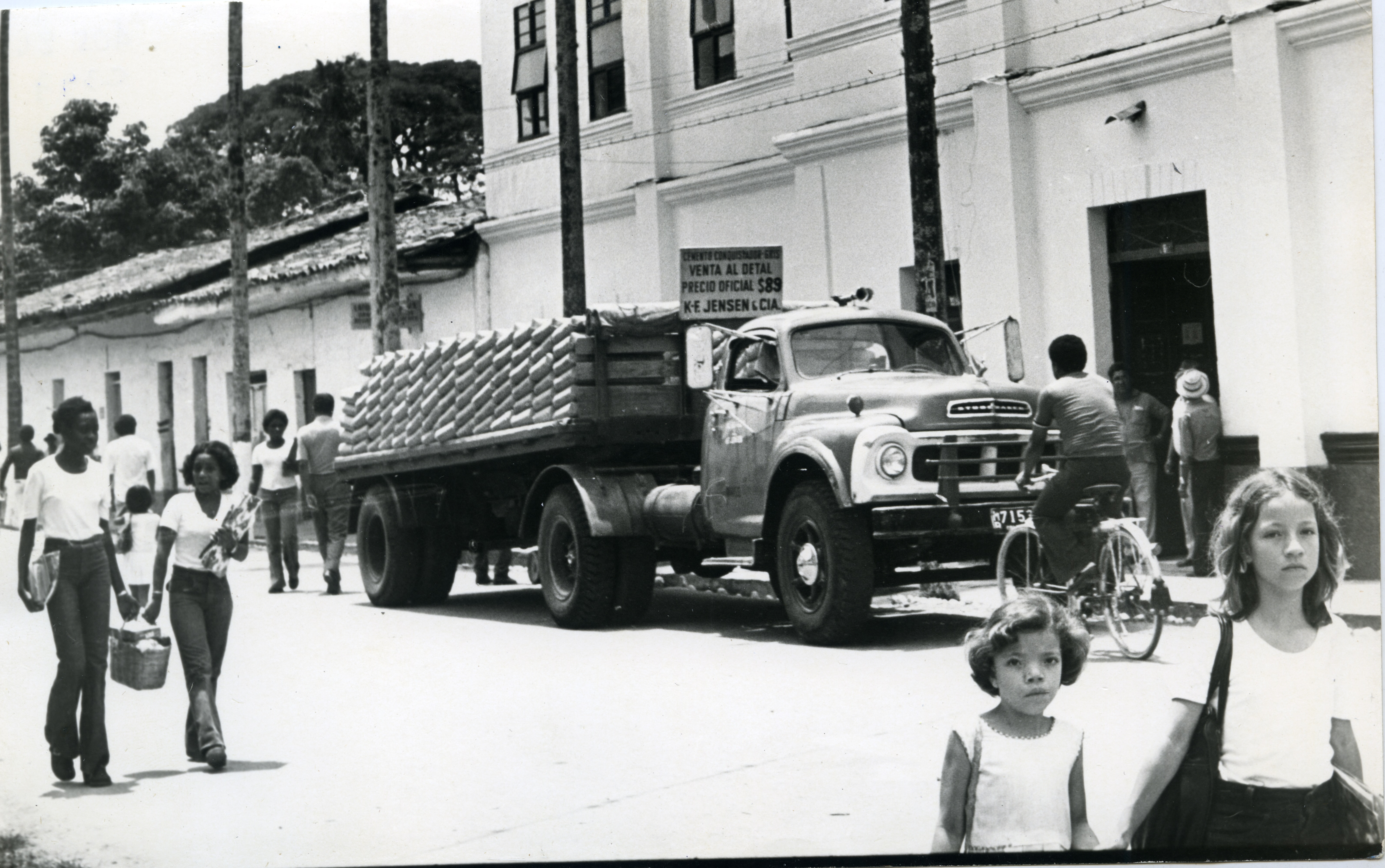 Observamos vehículo cargado con cemento. Se aprecia transeúntes en la calle