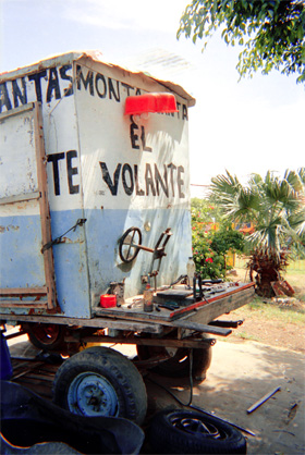| dc.description | Plano medio. Como elemento determinante en la imagen carreta en la cual funciona el montallantas El Volante. Al fondo vegetación. Día soleado. | spa |