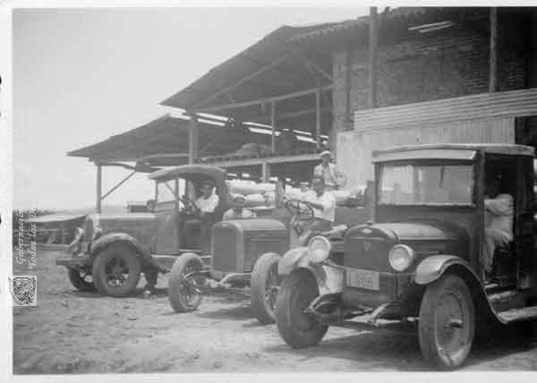 Trapiche del Ingenio Central Castilla, carros transportadores de azúcar. Pradera, fecha aproximada, 1940.