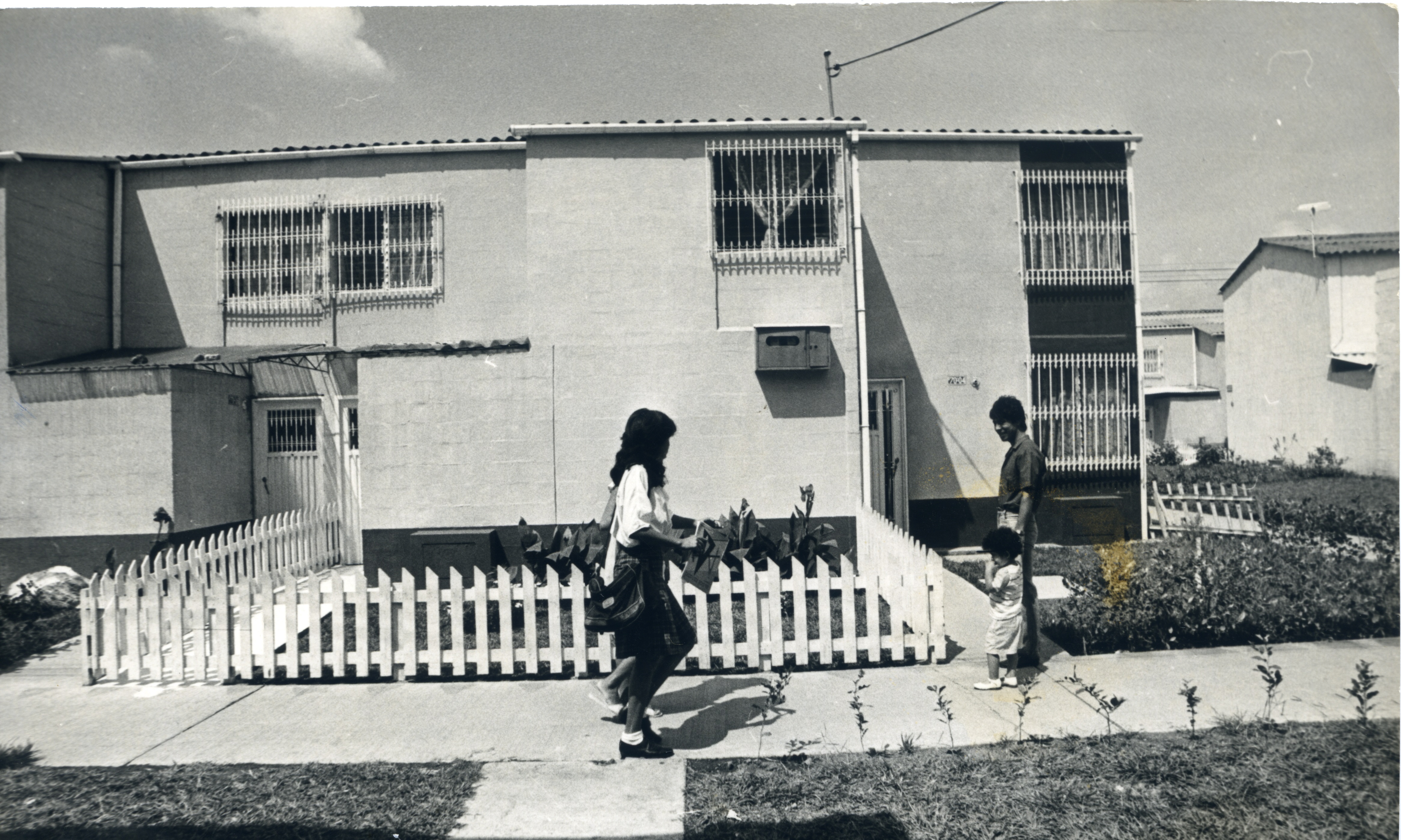 | dc.description.abstract | Aspecto de las casas del barrio Villa del lago, de dos plantas y antejardín. En medio se observan dos mujeres caminando por el andén y al costado izquierdo un hombre con un menor de edad. | spa |