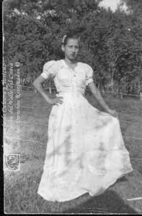 Mariela Caicedo de Gónzalez, luciendo un traje largo elegante. Bugalagrande. 1951.