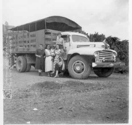 Familia Londoño Carvajal, de paseo en el camión de la familia. Pradera, fecha aproximada, 1950.