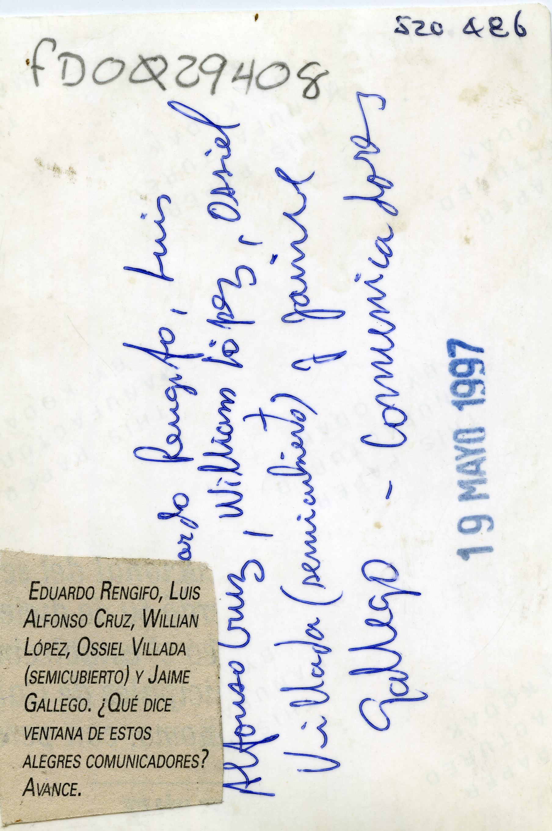 Se observa alegres los periodistas, eduardo rengifo, luis alfonso cruz, ossiel villada (semicubierto) y jaime gallego.