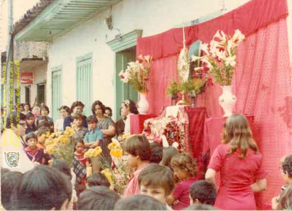 Procesiones del corpus cristi, altar en al antigua vivienda de la familia Diez Ramírez, donde funcionan las instalaciones de Bancafé