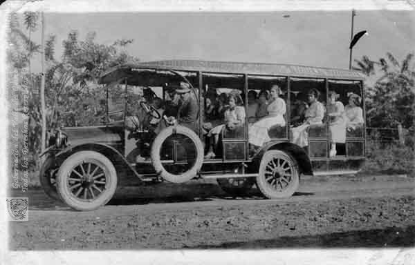Uno de los primeros transportes públicos Buses de Línea. Palmira, fecha aproximada, 1930.