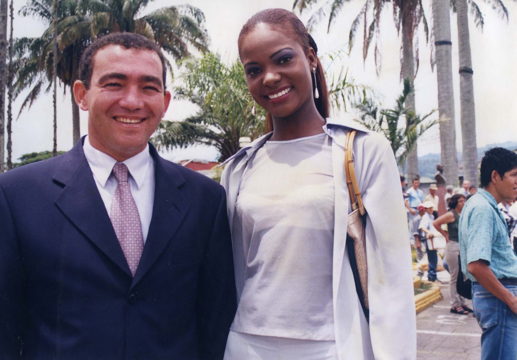 Caicedonia, Valle del Cauca. Fundado en 1905, por Daniel Gutiérrez, Jorge Moreno, Zenón Baena. Municipio desde 1923. Economía importante en agricultura, caficultura, ganadería, comercio, entre otros. Atractivo turístico: cerro de cubides, club de tiro, caza y pesca, río barragán, paraje natural, lagos. Observamos en la imagen, ingeniero, Hernán Duque Henao, alcalde 1998 – 2000. Se aprecia acompañado por la reina nacional de la belleza Vanessa Alexandra Mendoza