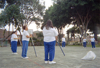 Señoras pertenecientes a grupo de la tercera edad en el barrio Las ceibas en medio de rutina de ejercicios