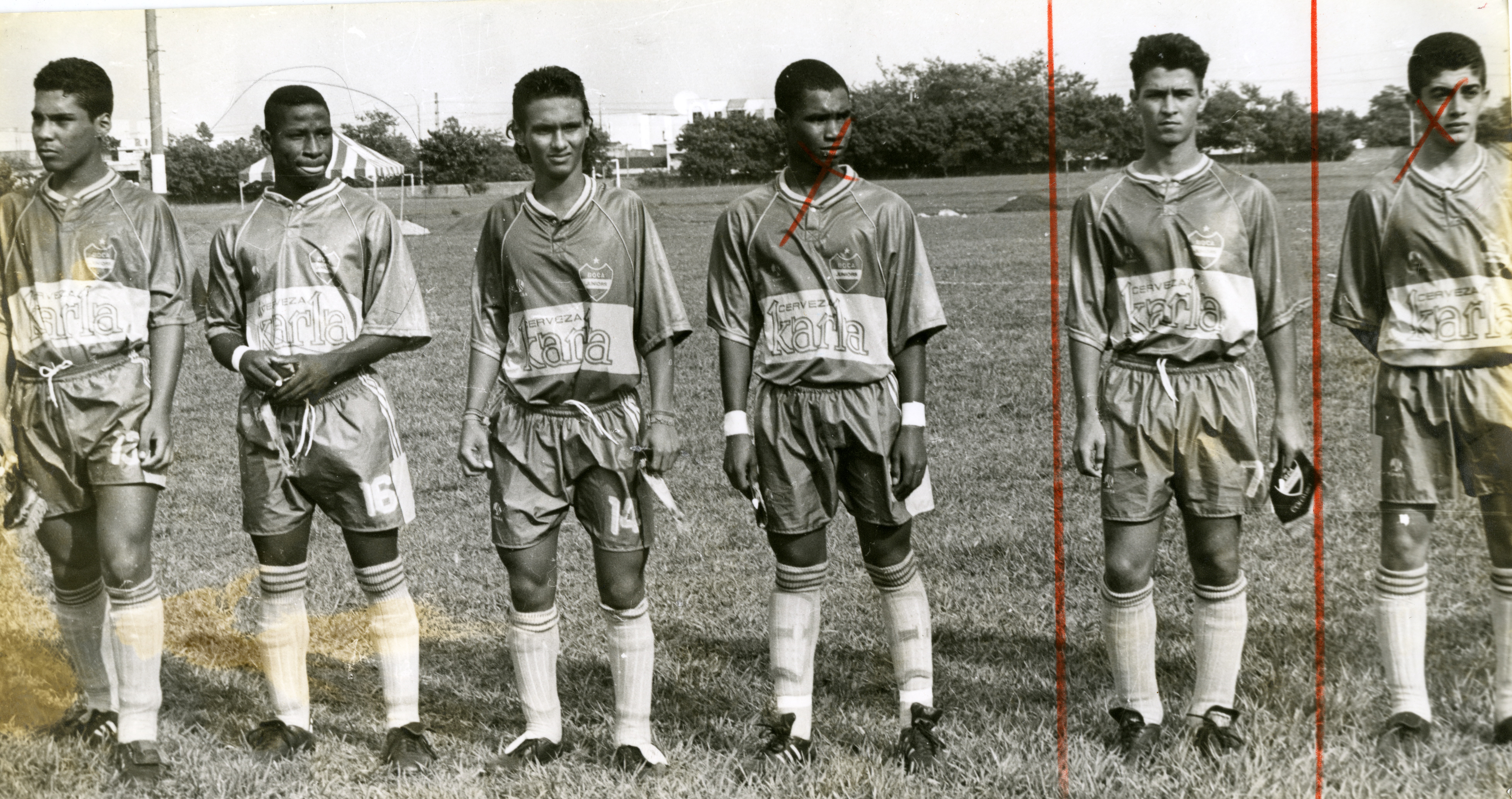 En la gráfica jugadores de Boca Juniors que participan en el torneo La Esperanza. Se aprecia varios jugadores posando para la foto en la cancha