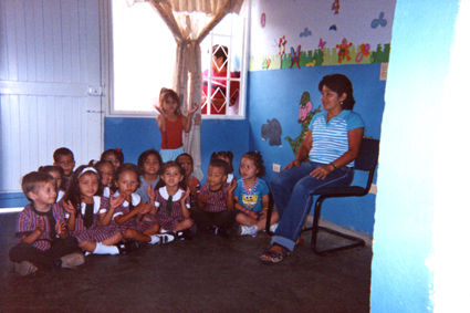 Zuluaga, M. C. (2005). Toma realizada en el interior de una institución educativa, donde se puede apreciar un grupo de niños vestidos con el uniforme de la institución, en una actividad lúdica. Santiago de Cali: Biblioteca Departamental Jorge Garces Borrero.