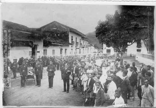 Cortejo fúnebre, acompanado por la comunidad y las autoridades locales. Roldanillo, 1939.