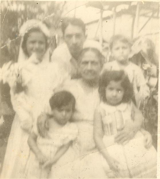 Primera comunión de María Soledad Libreros Medina, la acompañan los niños; Alvaro, Jesús A. Libreros y niñas; Fanny y Martha. Zarzal, fecha aproximada, 1960.