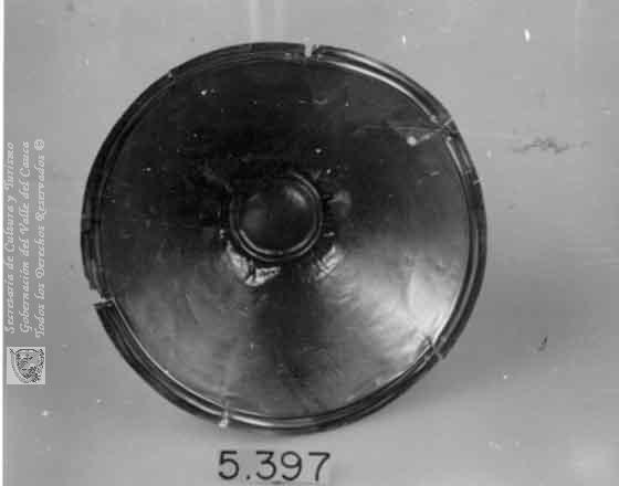 Colgante de orejera troncónico. Período Yotoco, Calima. Museo del Oro. Bogotá.