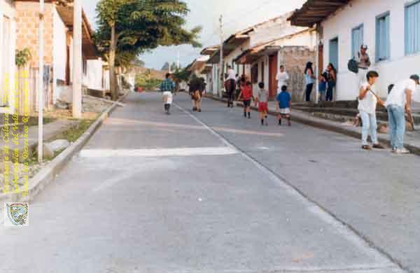 Calle Bolívar, barrio típico de los pueblos vallecaucanos donde se presenta una activa intercomunicación entre los vecinos, Ulloa, C. 1998.