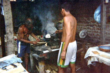 Alzate Vargas, A. C. (2005). Hombres cocinando en un fogón de leña en el patio interior de una residencia. Santiago de Cali: Biblioteca Departamental Jorge Garces Borrero.