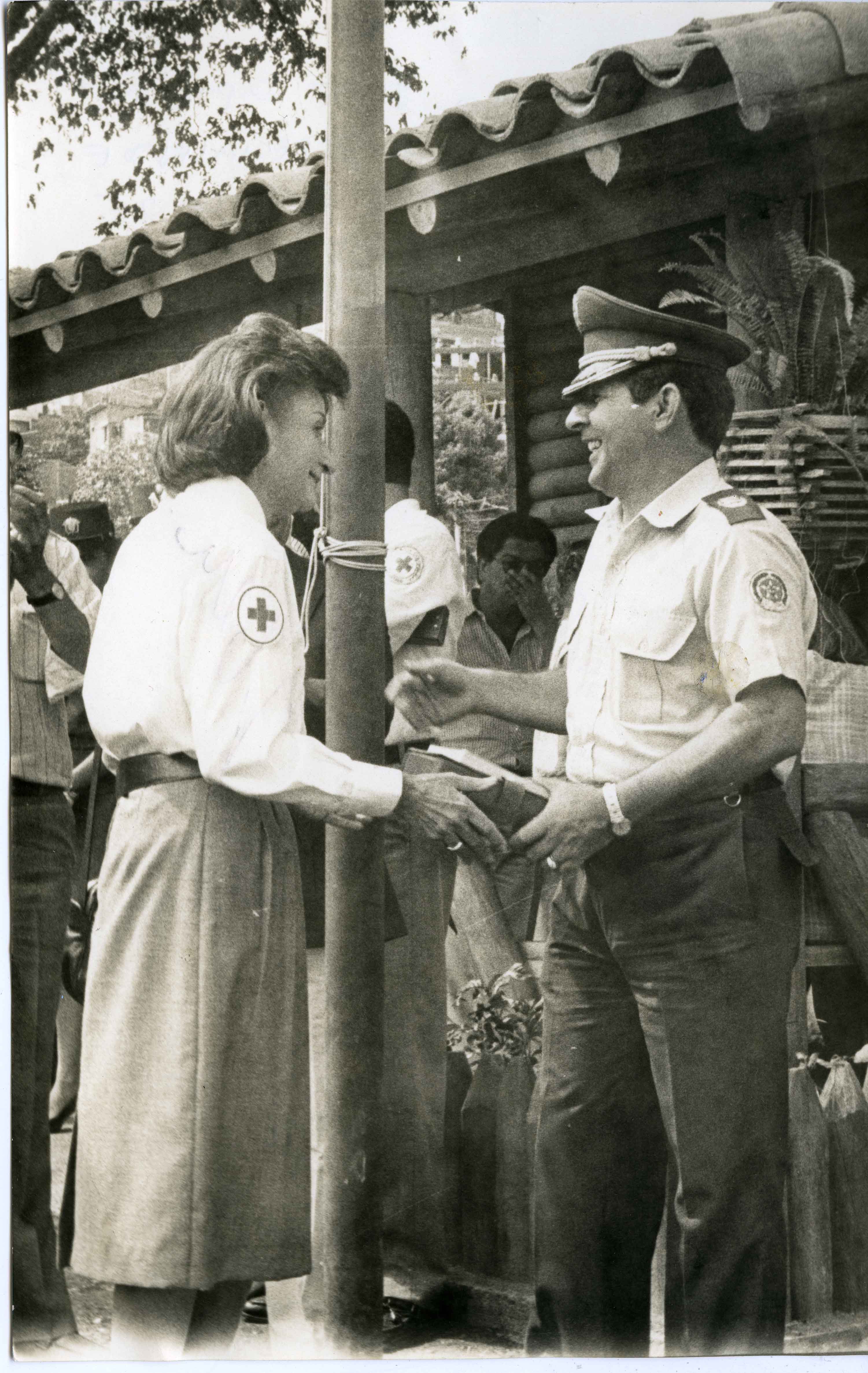 Olga Lucia de Franco Jefe departamento de Socorro y servicios especiales de la Cruz Roja, Hace entrega de botiquines para todos los CAI. El Archivo del Patrimonio Fotográfico y Fílmico del Valle del Cauca es responsabilidad de la Biblioteca Departamental del Valle Jorge Garcés Borrero, por convenio de cooperación suscrito con la Secretaria del Cultura Departamental, con el fin de aunar esfuerzos para su conservación, preservación y divulgación del Archivo entre la comunidad Vallecaucana, especialmente entre los estudiantes e investigadores que visitan la Biblioteca, propiciando el su uso y consulta permanente. La universidad Icesi es un colaborador en el proceso de difusión, facilitando la tecnología que permite la consulta de las imágenes.