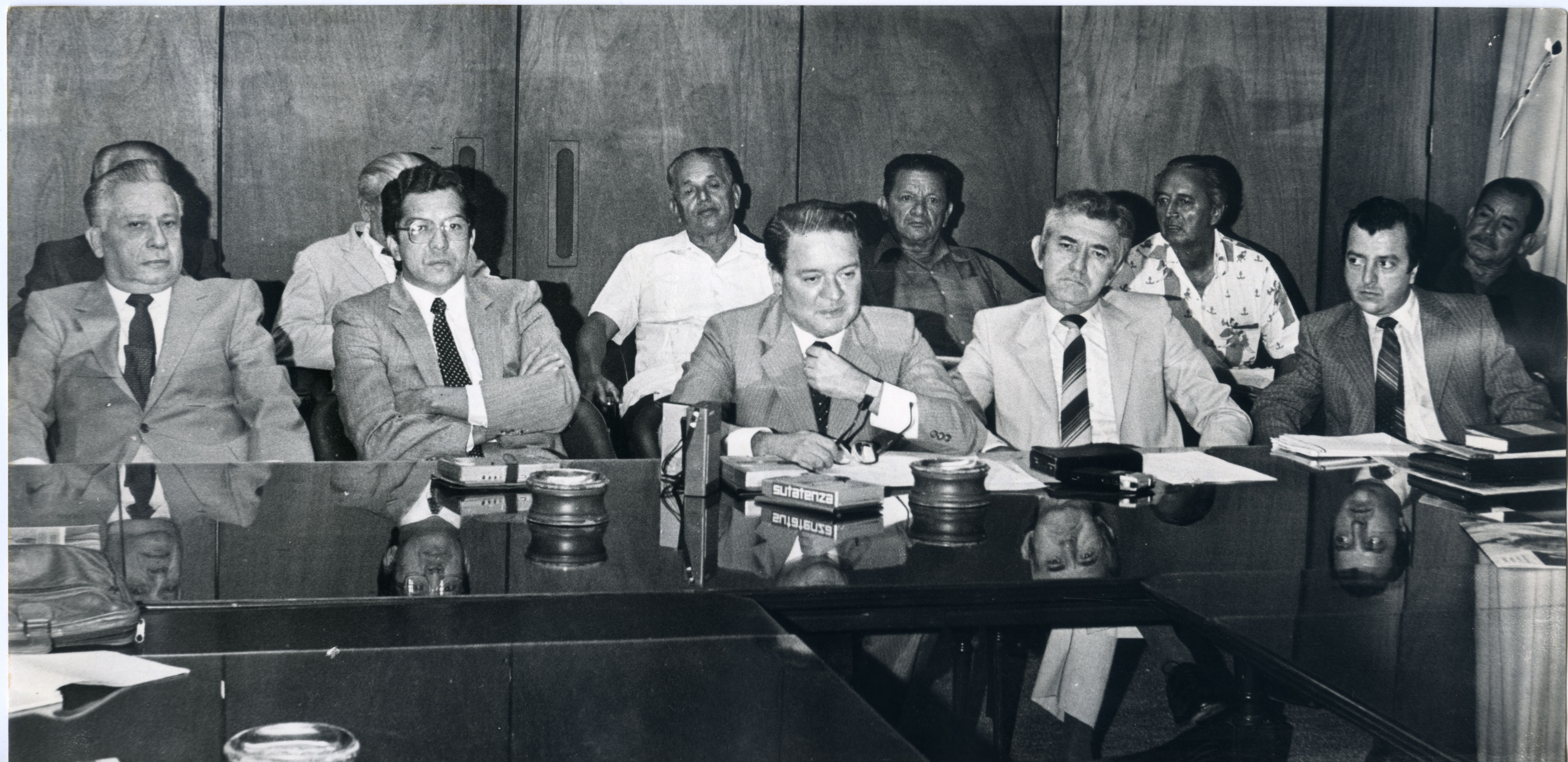 Gobernador Humberto González Narváez en reunión. Firma de aumento de pensiones de jubilación por parte del mandatario