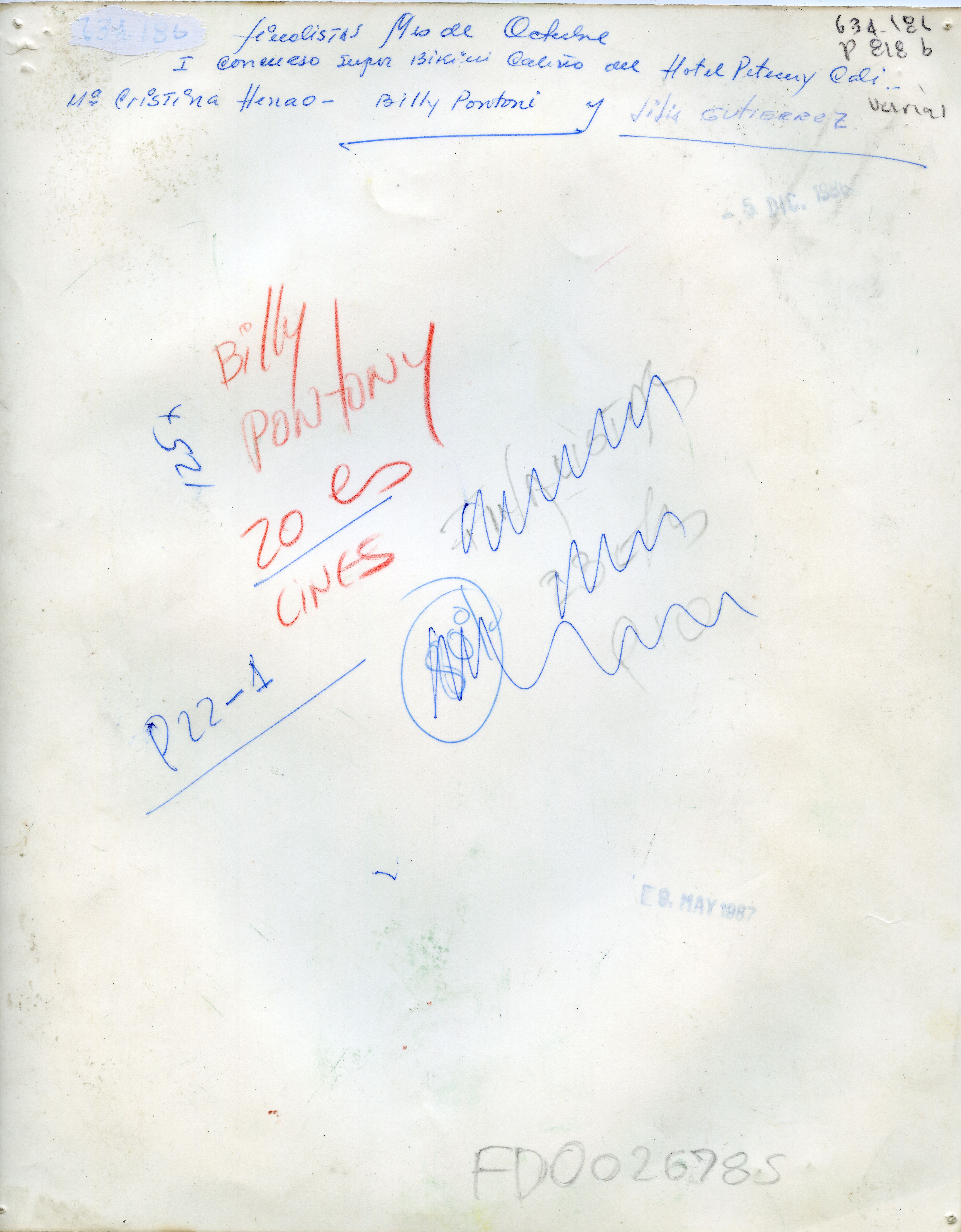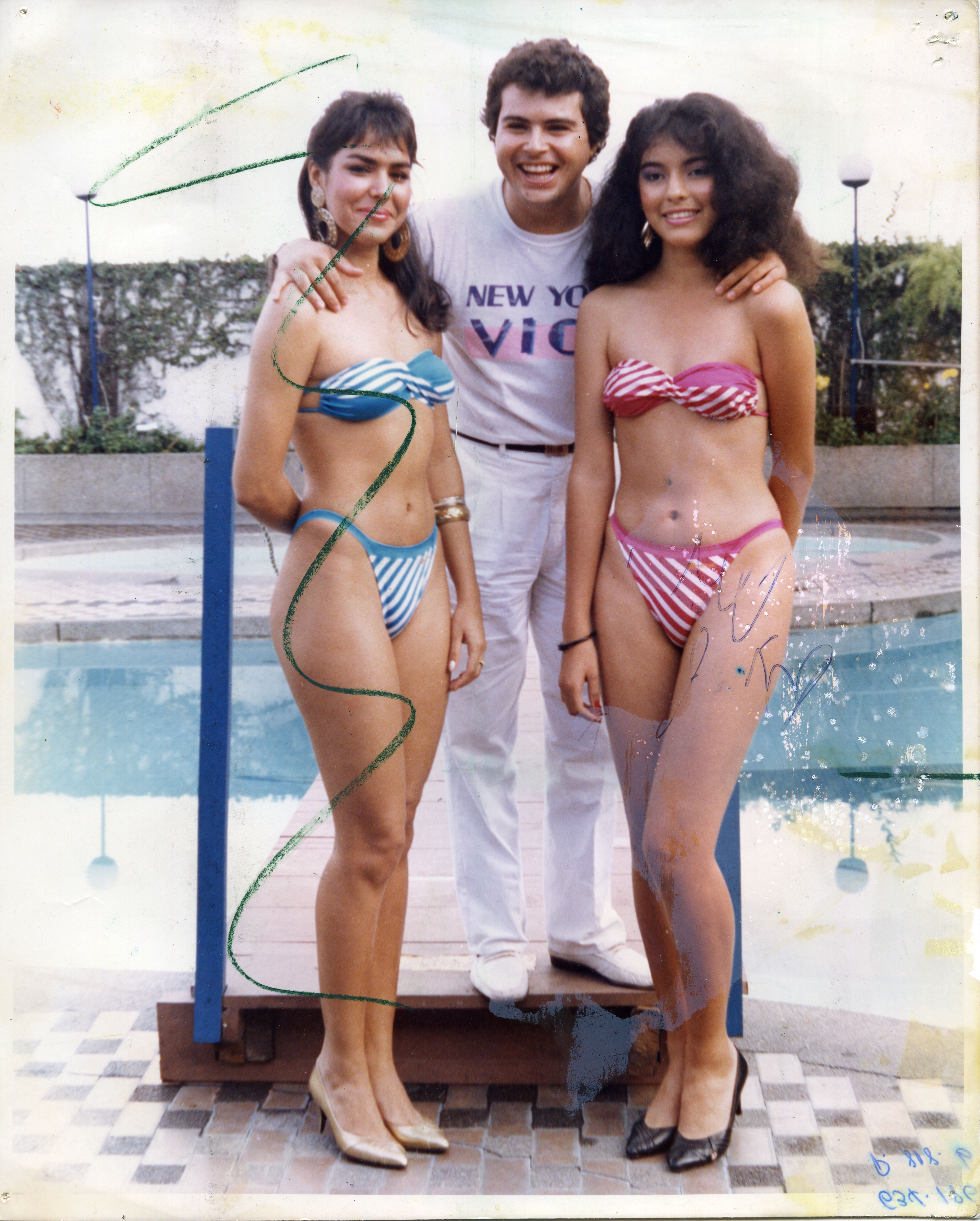 En la gráfica es posible identificar al cantante Billy Pontony sobre una pequeña plataforma, el artista posa para la foto en compañía de dos mujeres en bikini. Al fondo de la fotografía se distingue una piscina.
