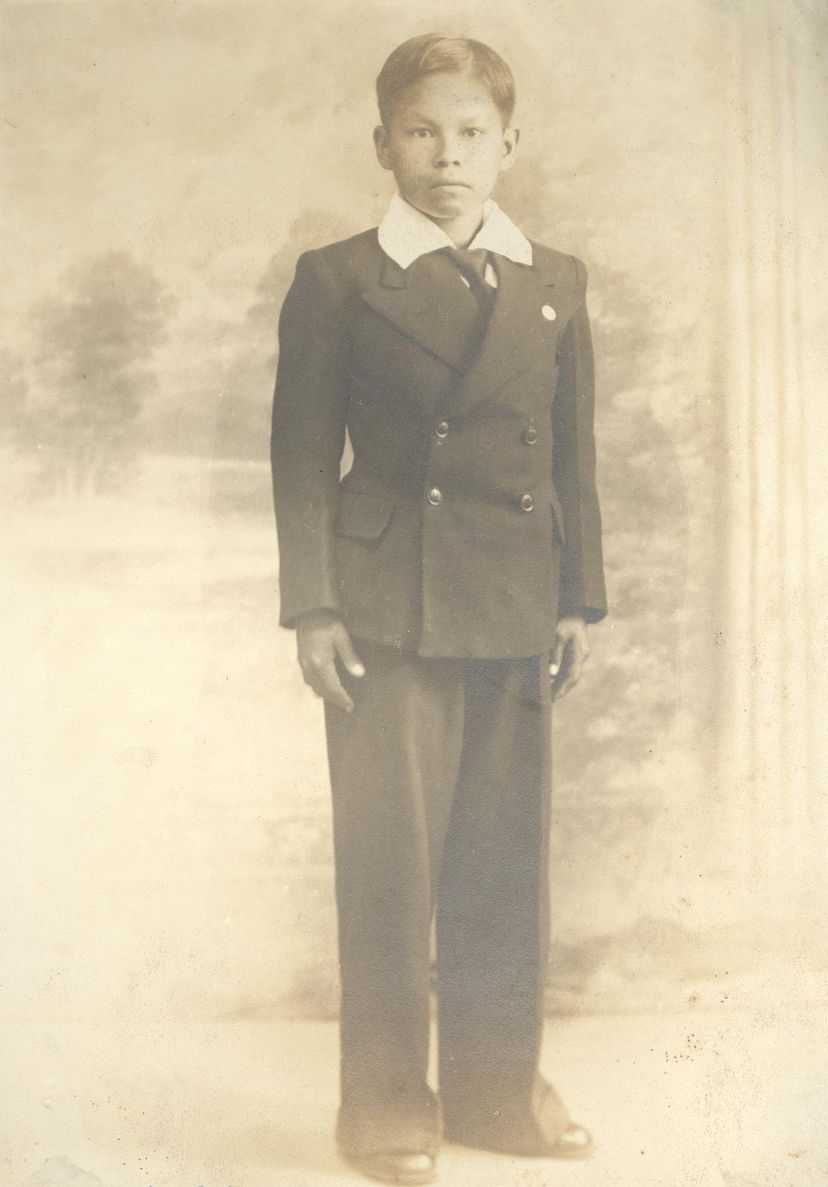 Teobaldo Tacachunga, indígena del amazona. Fue traído por el rector de la "Escuela de Artes y Oficios José María Cañadas". Trabajó en el taller de ebanistería. Santiago de Cali, fecha aproximada, 1935.