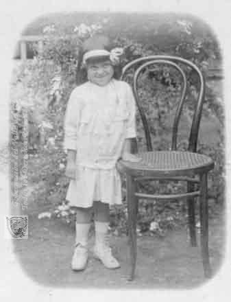 Virgelina Sierra Montaño de 5 años de vida posando en el patio de su casa. Cali. 1918.