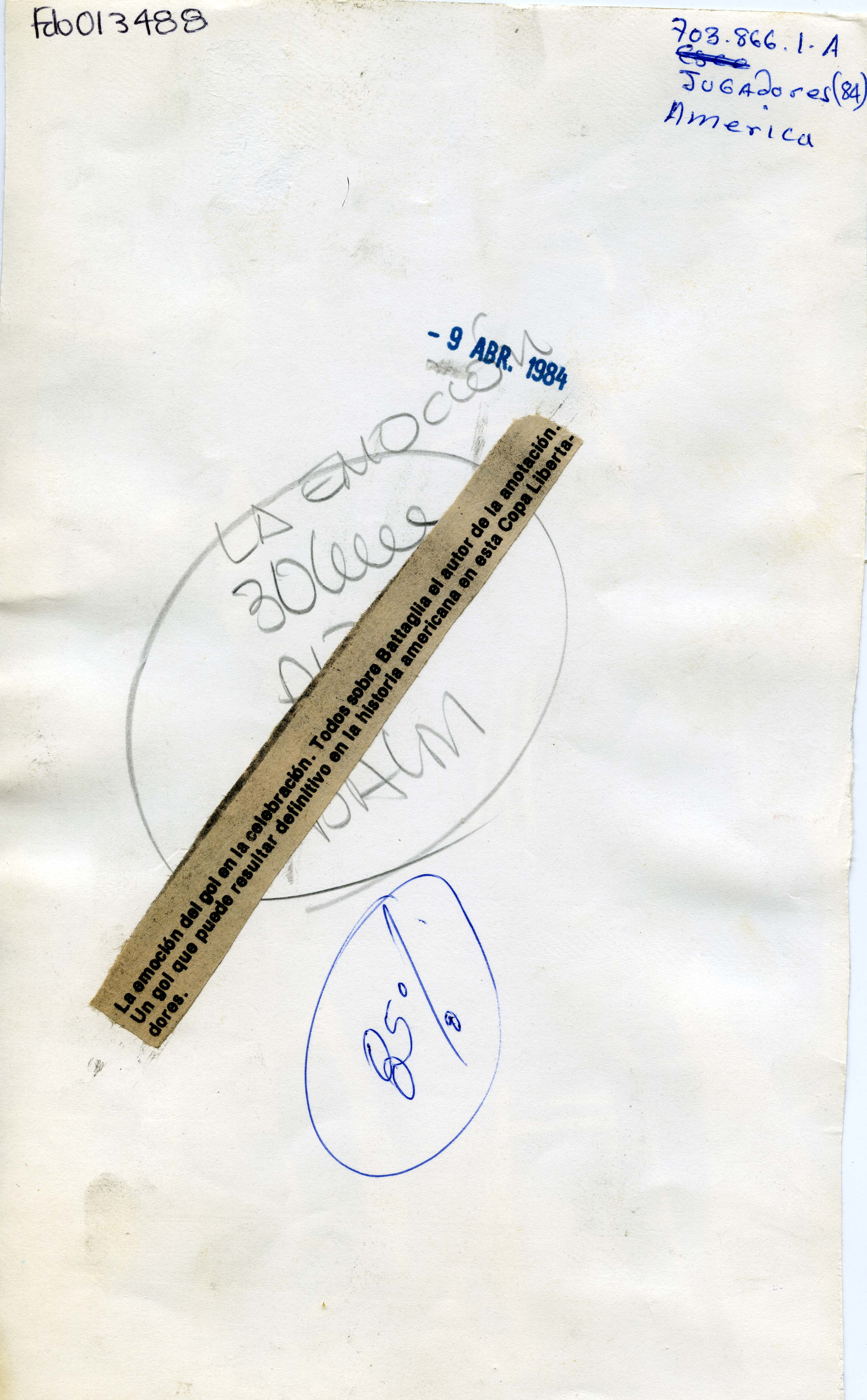 Jugadores del América de Cali celebrando un gol. Al reverso de la fotografía dice: La goleada. Gonzalo Soto, Juan Manuel Battaglia y Alex Escobar celebran la cuarta conquista del América ante Cúcuta. Este fue otro triunfo importante del cuadro dirigido por Gabriel Ochoa.