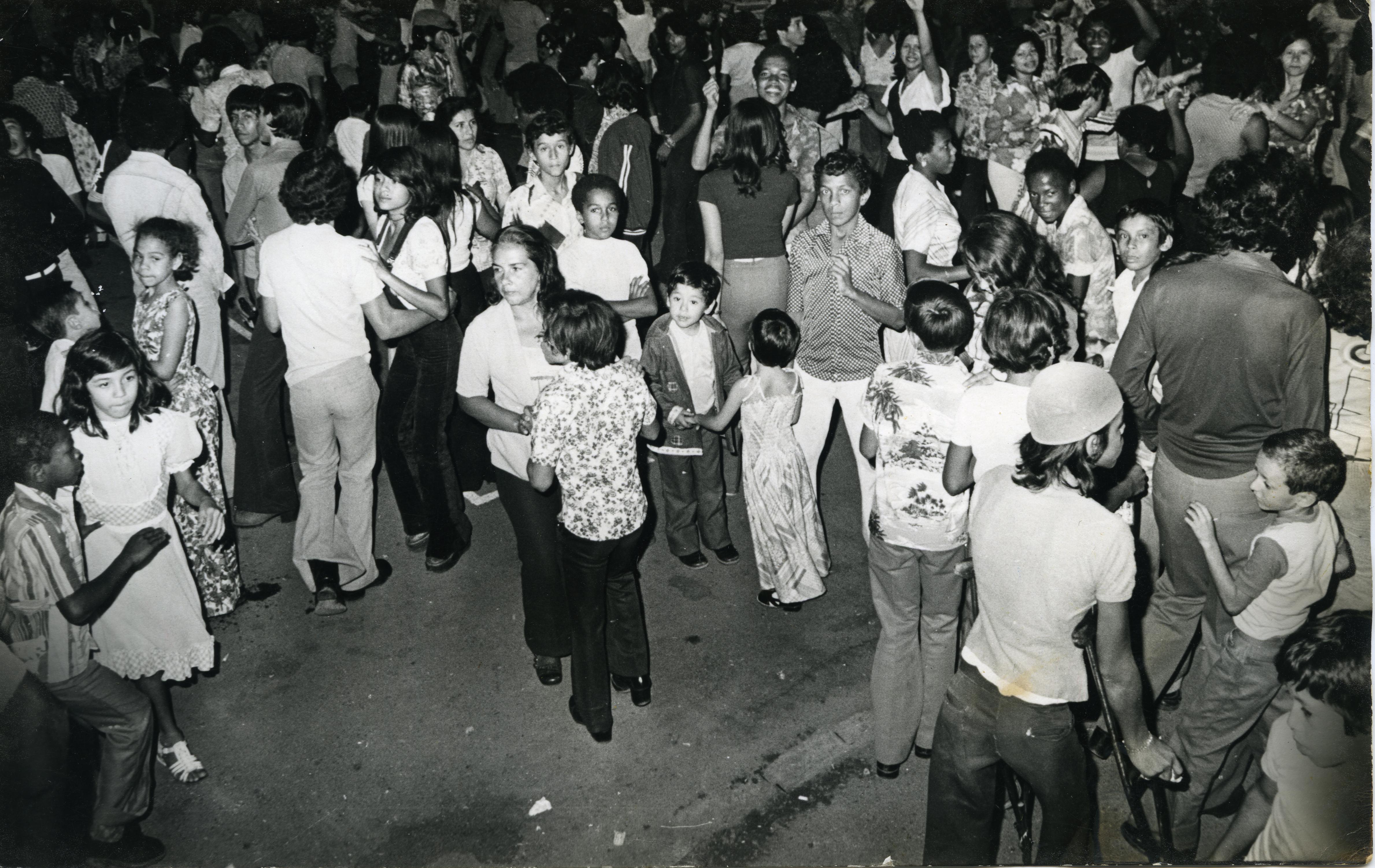 En la gráfica se observan varias personas y niños bailando en parejas.