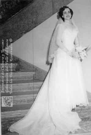 Esperanza Méndez de Lara,luciendo su hermoso traje de novia el dia de su boda