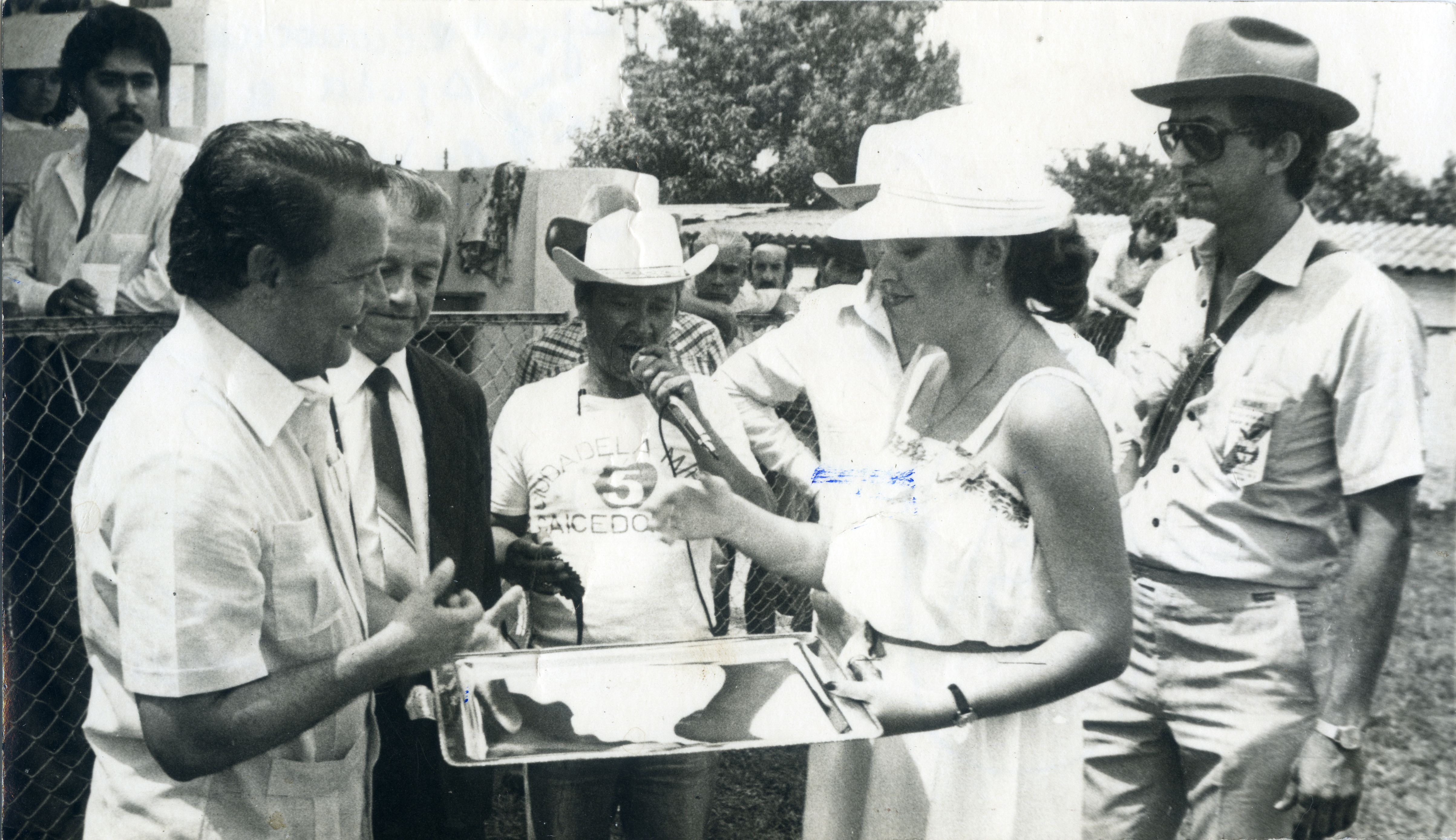 En la fotografía podemos observar al señor Humberto González Narváez recibiendo un reconocimiento por parte de la comunidad de Caicedonia.