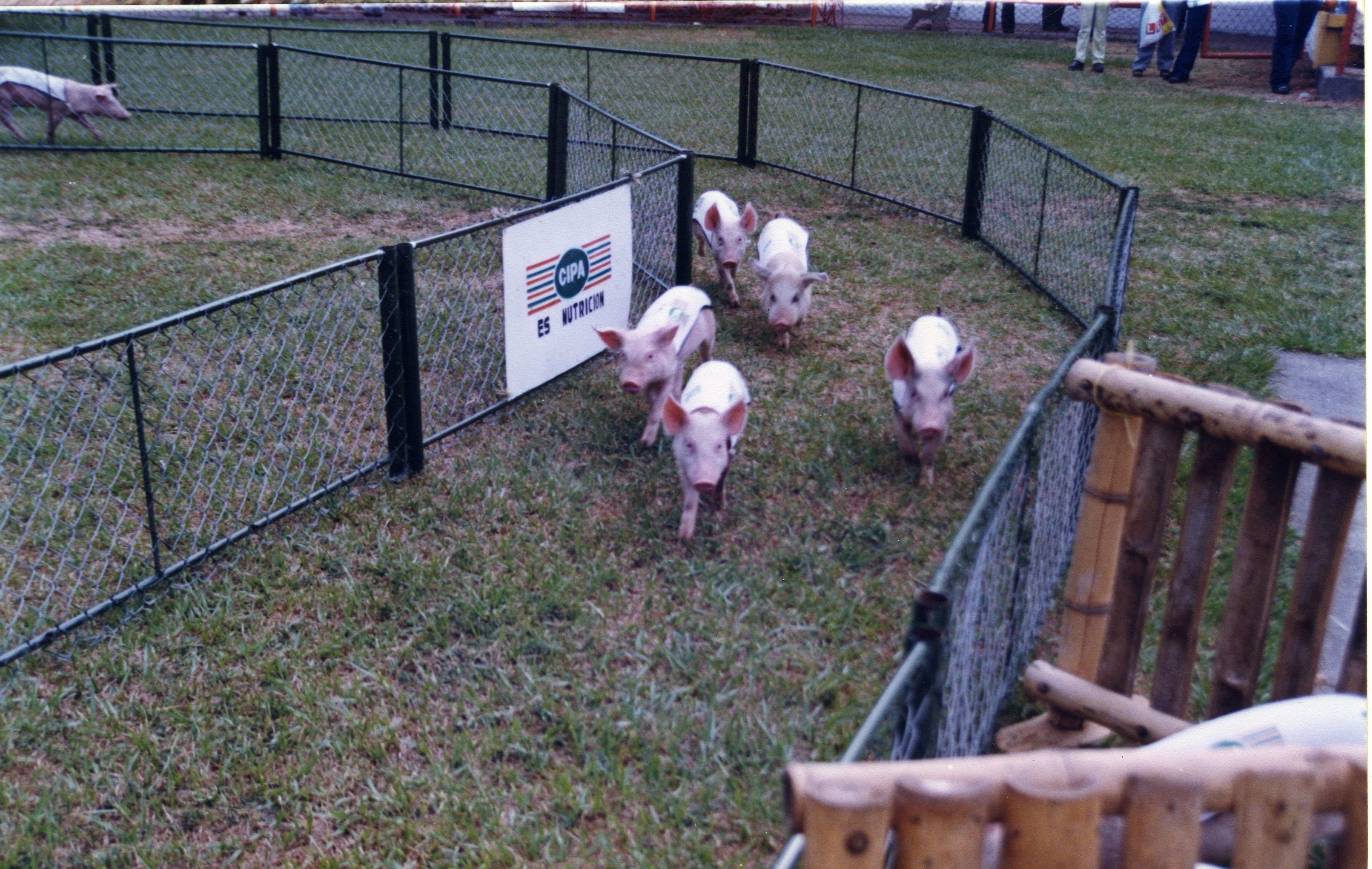 En la gráfica se observa un grupo de cerdos en medio de la competencia "Juan Chanco Montó-ya"