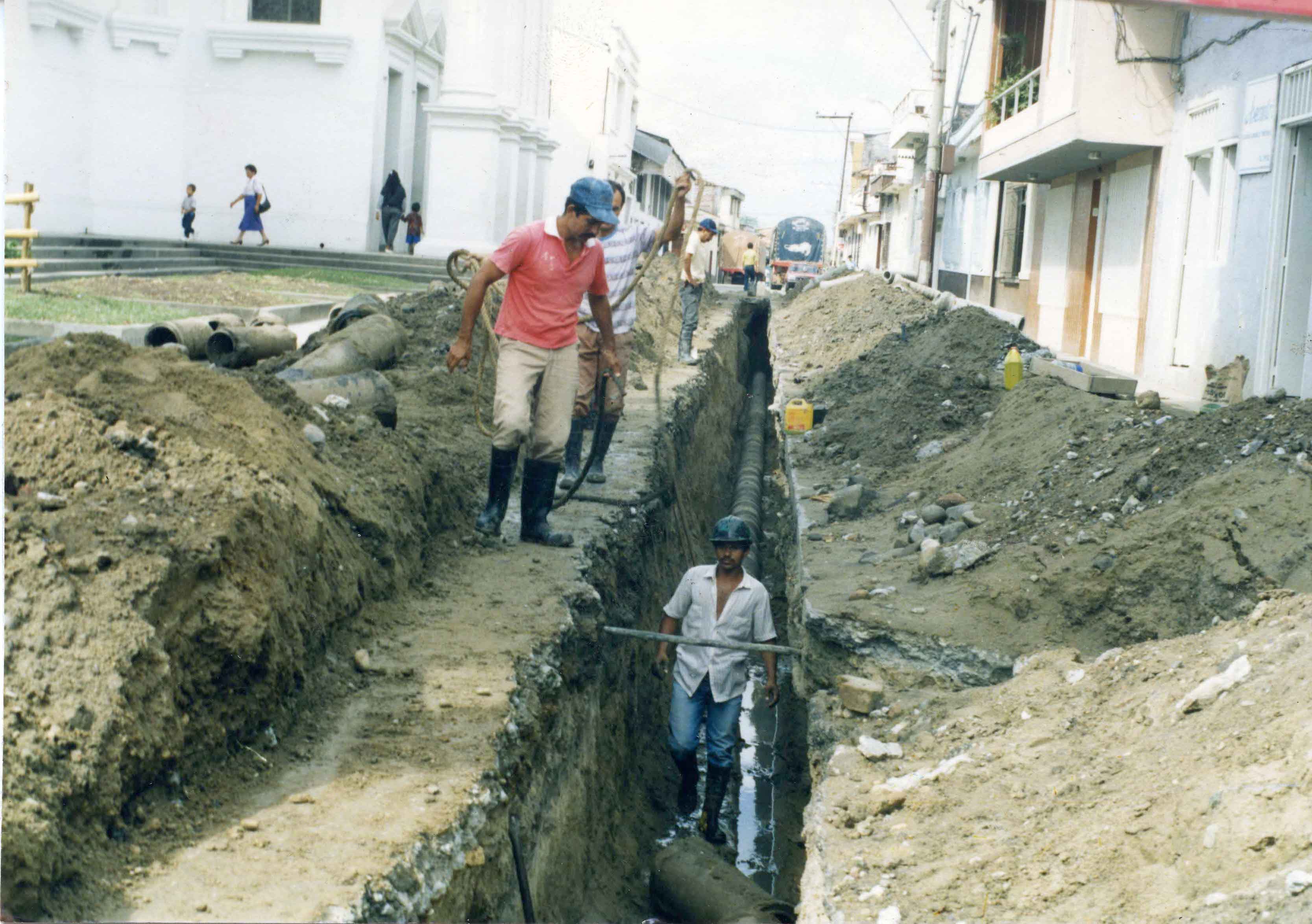 Obras de Construcción de alcantarillado de la ciudad, via adyacente a la Iglesia Nuestra Señora del Carmen. El Archivo del Patrimonio Fotográfico y Fílmico del Valle del Cauca es responsabilidad de la Biblioteca Departamental del Valle Jorge Garcés Borrero, por convenio de cooperación suscrito con la Secretaria del Cultura Departamental, con el fin de aunar esfuerzos para su conservación, preservación y divulgación del Archivo entre la comunidad Vallecaucana, especialmente entre los estudiantes e investigadores que visitan la Biblioteca, propiciando el su uso y consulta permanente. La universidad Icesi es un colaborador en el proceso de difusión, facilitando la tecnología que permite la consulta de las imágenes.
