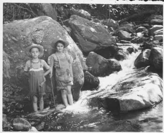 Niños de la Familia Barney Caldas en un paseo al río Parraga, cerca a la hacienda La Aurora