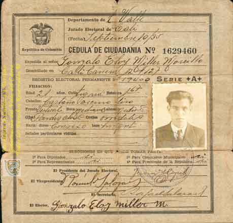 s. n. (1935). Documento de identidad de Gonzalo Eloy Miller Morcillo & 103246. JAMUNDI: Biblioteca Departamental Jorge Garces Borrero.
