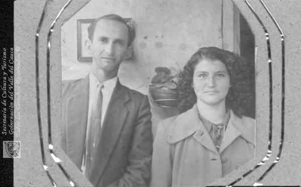 El profesor de la Escuela San José, Heriberto Garcia y su esposa Ofelia Jaramillo. Versalles, C.1953.