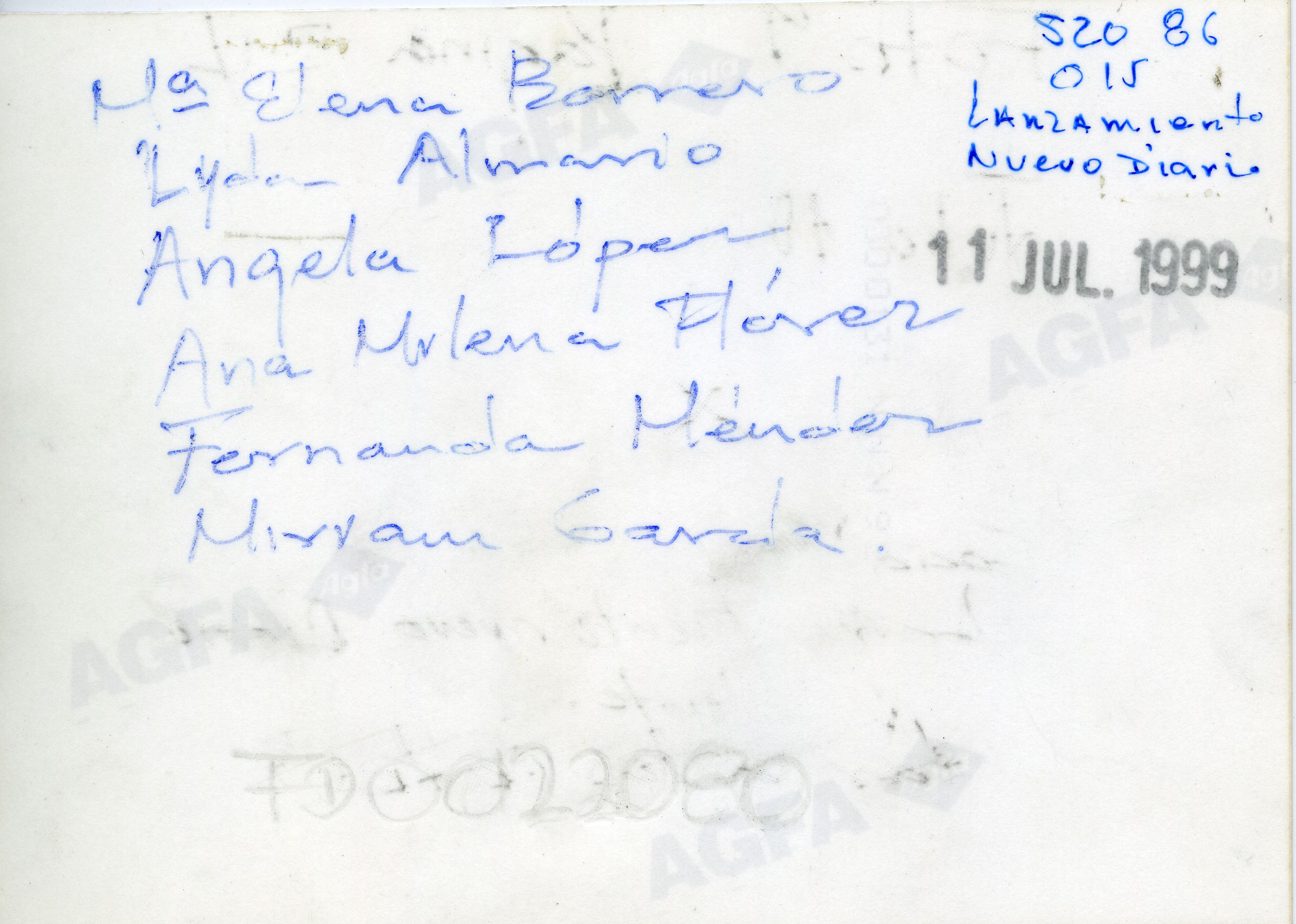 Se aprecia a un grupo de seis mujeres posando sonrientes en el acto de lanzamiento del Nuevo Diario Occidente.
