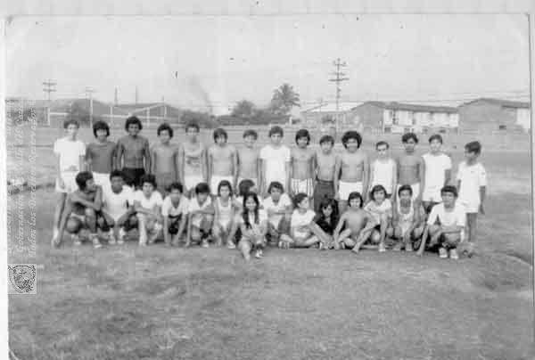 Grado 3 de bachillerato del Colegio Inem, dispuestos para un partido de futbol. Cali. 1972.