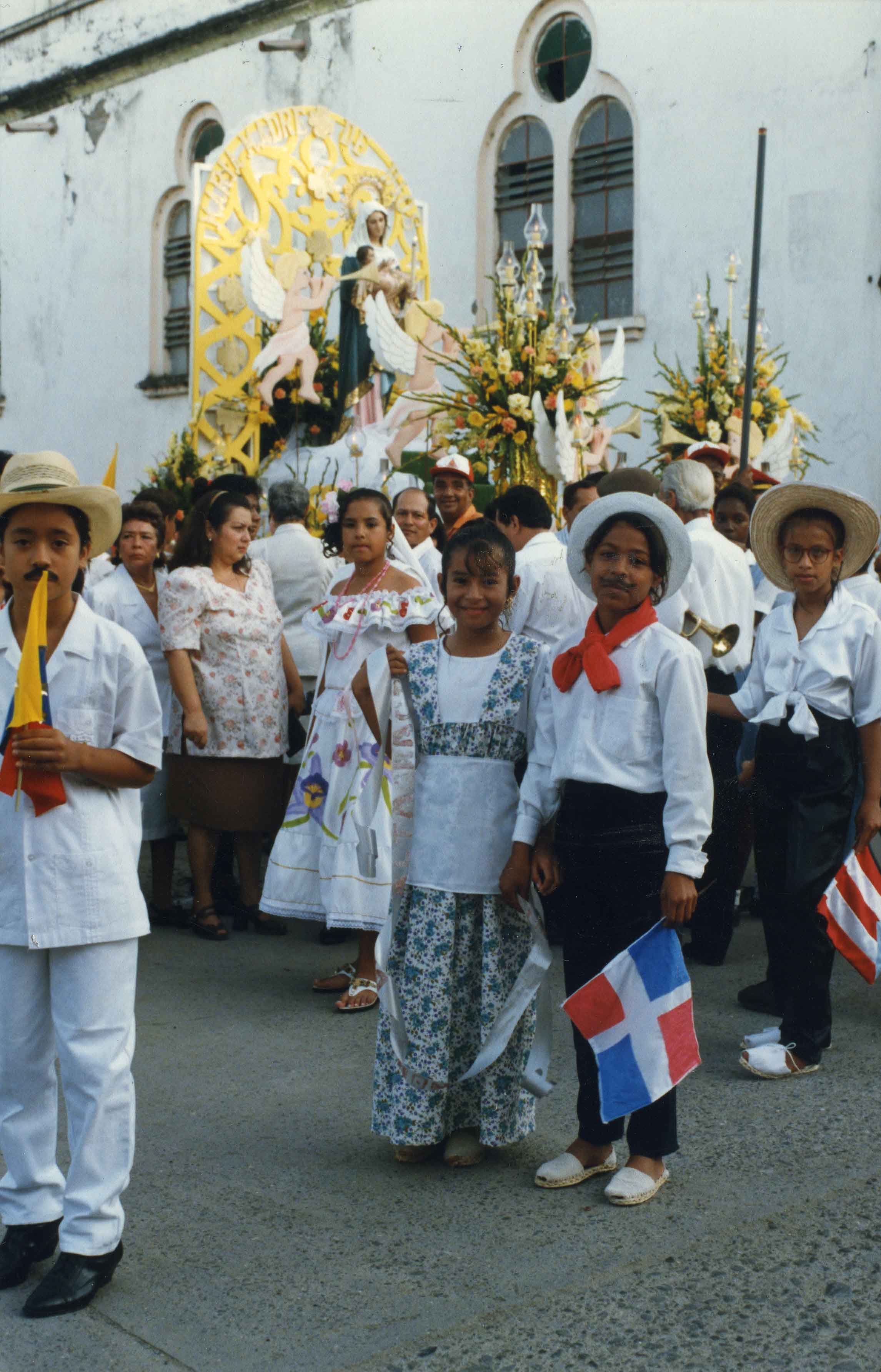 La procesión de la Virgen de Nuestra Señora de la Candelaria es una de las mas solemnes que se realizan durante las fiestas, los niños durante el desfile participaron con trajes y banderas representativas de diferentes paises.El Archivo del Patrimonio Fotográfico y Fílmico del Valle del Cauca es responsabilidad de la Biblioteca Departamental del Valle Jorge Garcés Borrero, por convenio de cooperación suscrito con la Secretaria del Cultura Departamental, con el fin de aunar esfuerzos para su conservación, preservación y divulgación del Archivo entre la comunidad Vallecaucana, especialmente entre los estudiantes e investigadores que visitan la Biblioteca, propiciando el su uso y consulta permanente. La universidad Icesi es un colaborador en el proceso de difusión, facilitando la tecnología que permite la consulta de las imágenes.