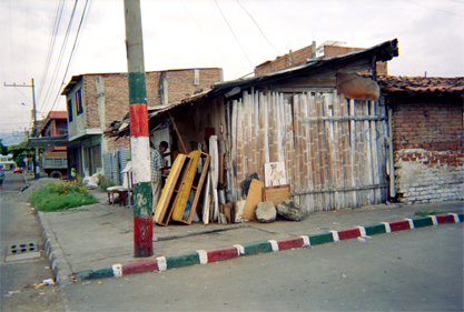 Castaño Rosales, R. (2005). En esta construcción de guadua esquinera funciona una marquetería en el barrio León XIII. Santiago de Cali: Biblioteca Departamental Jorge Garces Borrero.