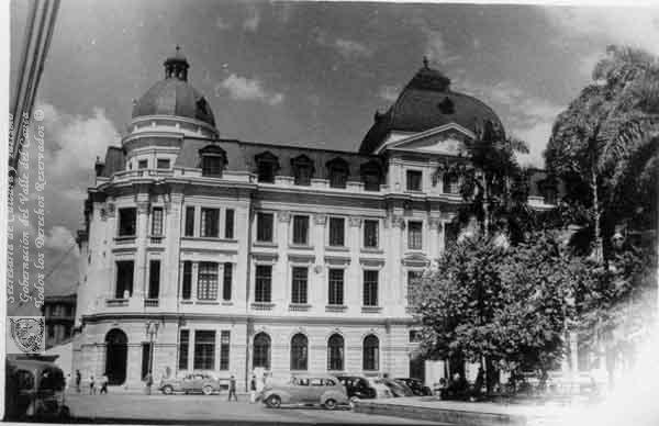 Panorámica de la fachada del Palacio Naciona, en la esquina de la Plaza de Caicedo. fecha desconocida