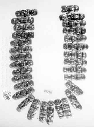 Collar de cuentas repujadas. Período Ilama, Calima. Museo del Oro. Bogotá.