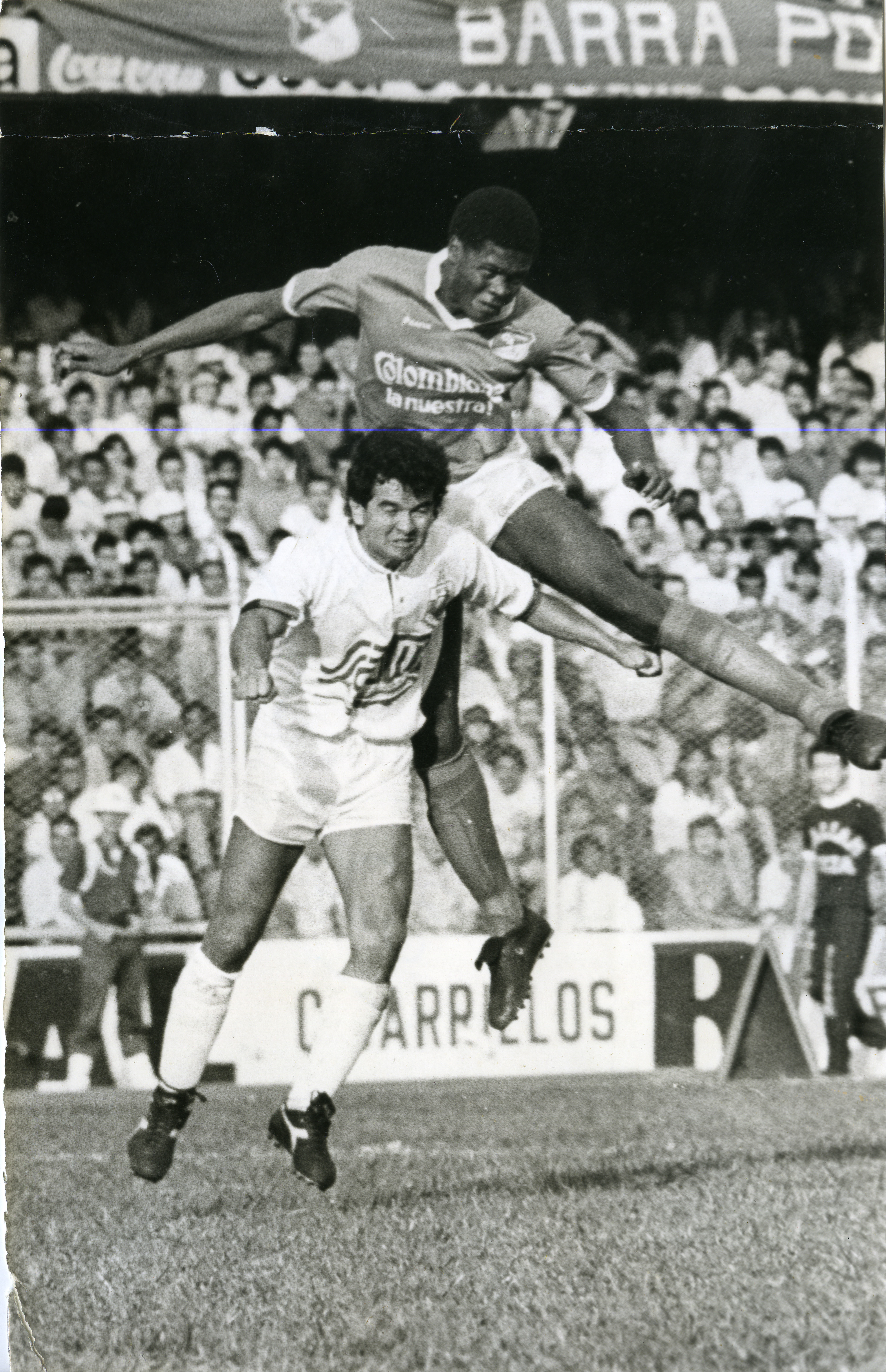 Partido entre los equipos de fútbol, Atlético Nacional y Deportivo Cali, realizado en el Estadio Olímpico Pascual Guerrero. El clásico termina en empate. Jugadores disputan balón por lo alto