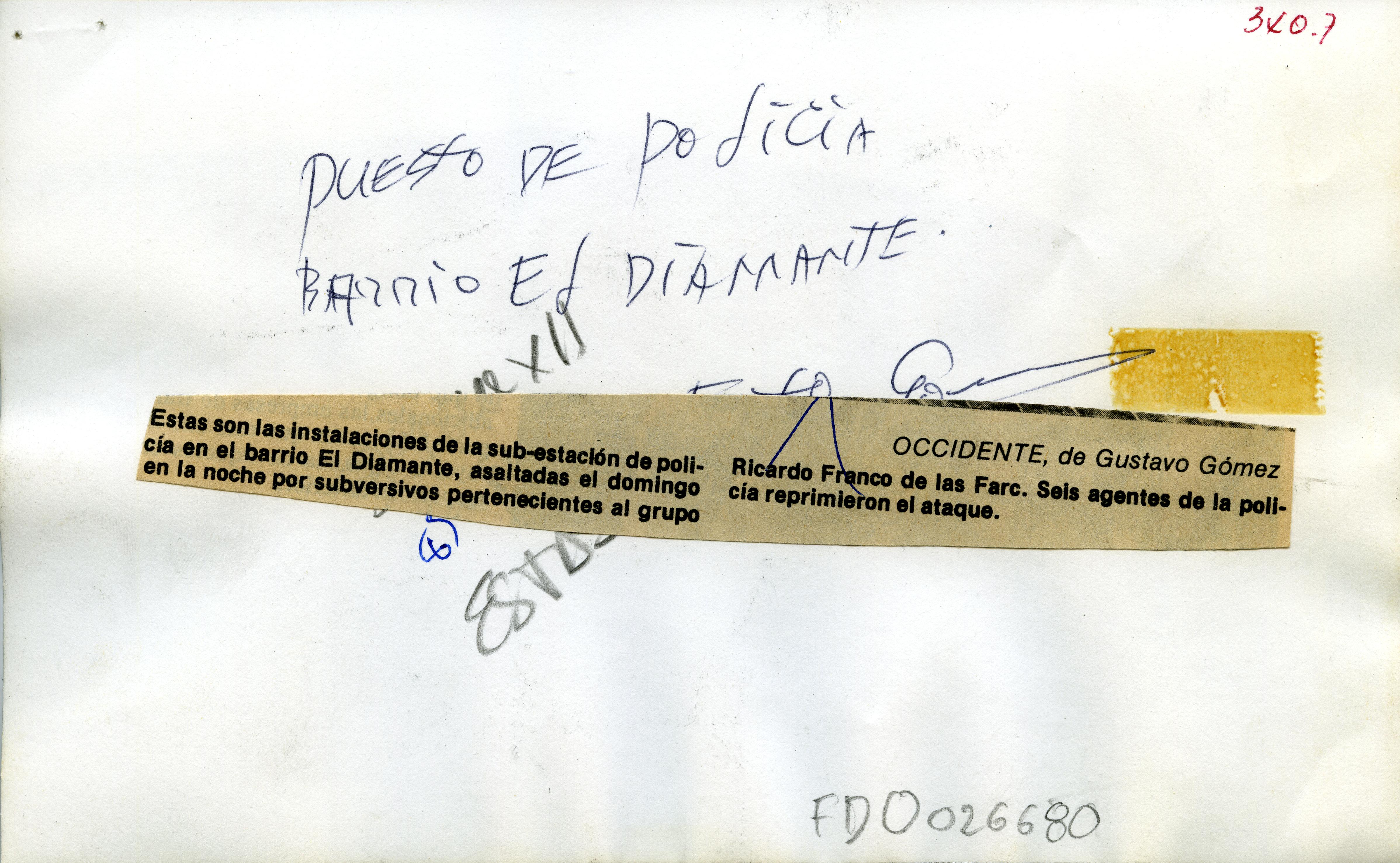 Fotografía de las instalaciones de la subestación de policía en el barrio El Diamante.
