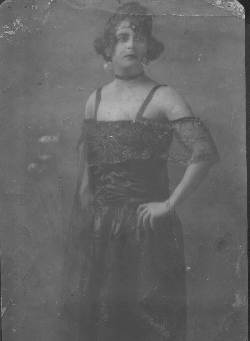 Ernesto Salcedo Ospina, tenor soprano, caracterizado por tener un registro de voz agudo, que permitía representar papeles femeninos en la ópera y el teatro. Buga, fecha aproximada, 1935.