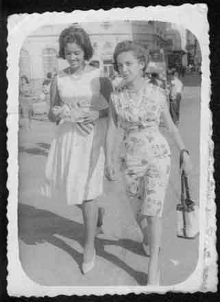 De paseo por el Puente Ortíz, la señorita Socorro Victoria y su madre Conchita Ordoñez. Santiago de Cali, 1961.