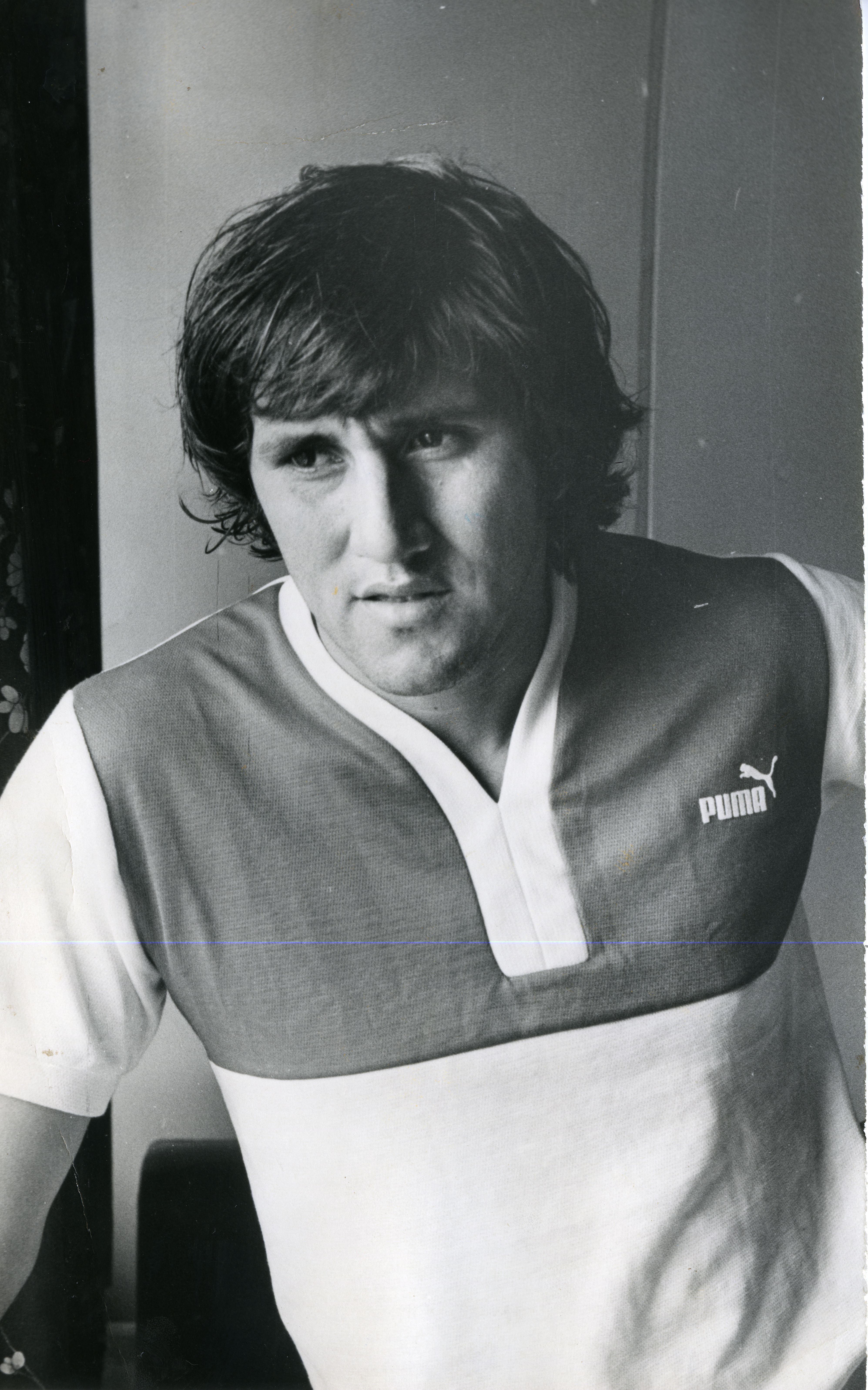 Jugador fútbol Rafael "El Toro", Humberto Bravo del Deportivo Cali, en año 1982