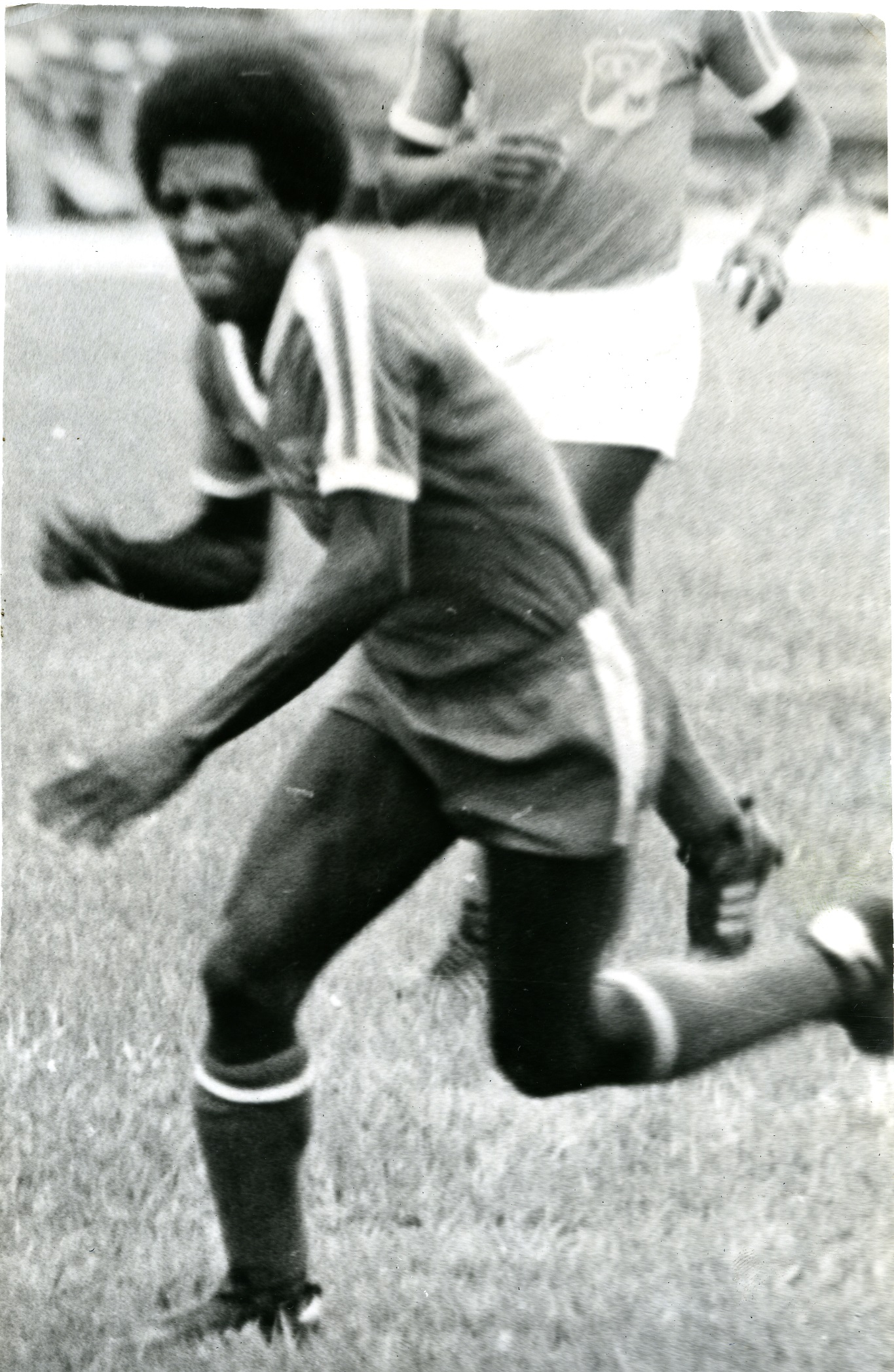 Víctor Jesús Lugo Ortiz, Robles, Jamundí, Valle. Jugador de fútbol del América de Cali. Fue conocido como el “fabricador de penales”, por la cantidad de este tipo de faltas que le pitaron a su favor, durante su carrera deportiva. Anotó 76 goles con el equipo, incluyendo el segundo tanto que le daría a la institución su primer título, en 1979. Participó también en la Selección Jamundí, Selección Valle, Selección Colombia, y varios equipos del Fútbol Profesional Colombiano. Observamos a Víctor Lugo corriendo durante el partido América vs Millonarios